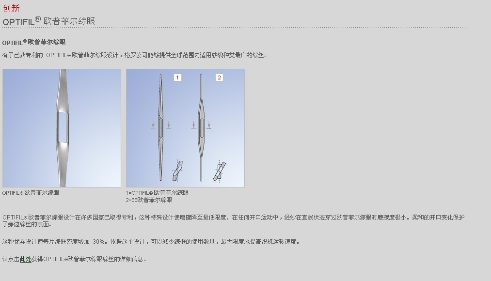 有了已獲專利的 OPTIFIL? 歐普菲爾綜眼設(shè)計(jì),格羅公司能夠提供全球范圍內(nèi)適用紗線種類最廣的綜絲。